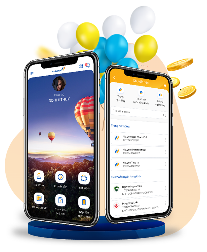 Thông báo biến động số dư, tỷ giá ngoại tệ. Tra cứu địa chỉ các điểm giao dịch, máy rút tiền ATM, điểm chấp nhận thẻ (POS) của PG Bank trên toàn quốc.