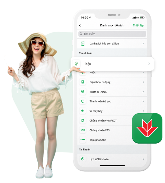 Thanh toán thẻ tín dụng, thanh toán trả góp,chuyển tiền chứng khoán. Thanh toán hơn 300 loại hóa đơn. Dịch vụ topup, thẻ cào điện thoại